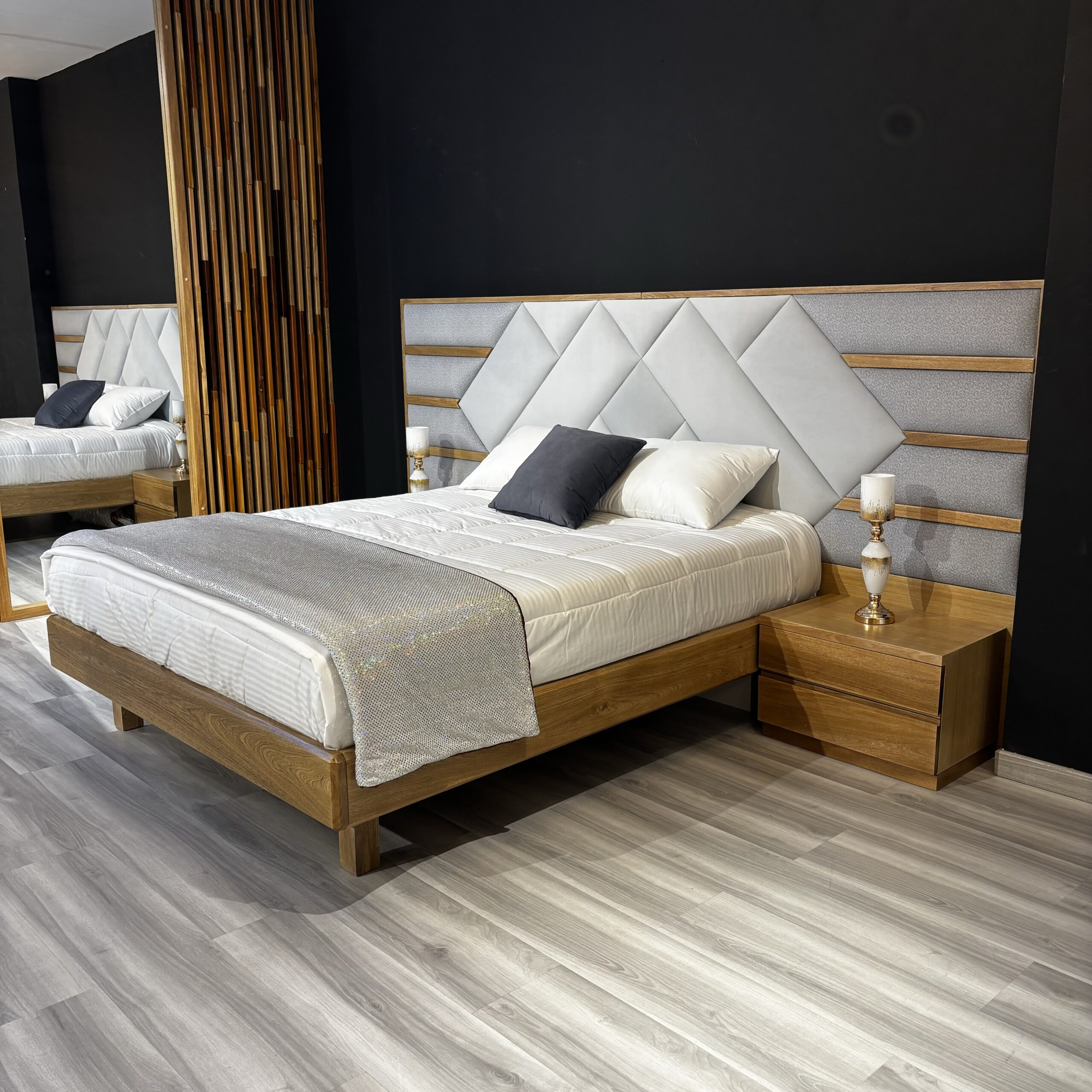 - Colores: Flormorado natural y tela tipo velvet de color gris
